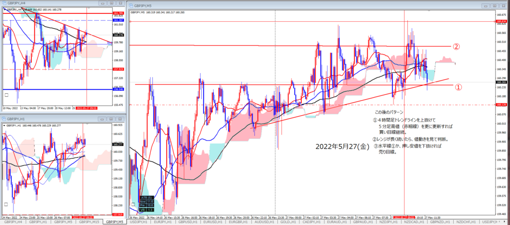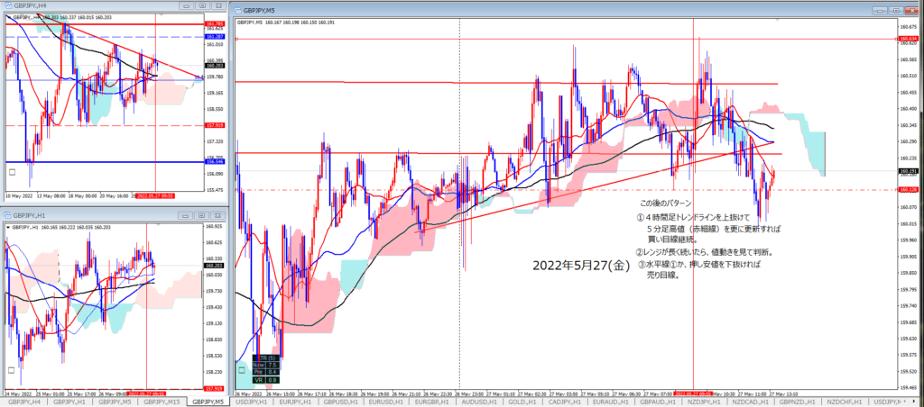 3つともポンド円です。時間足を変えて表示。ORZさんの手法を使っています。