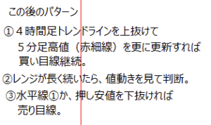 4時間足が高値を切り下げて下降トレンドラインが引ける状態。